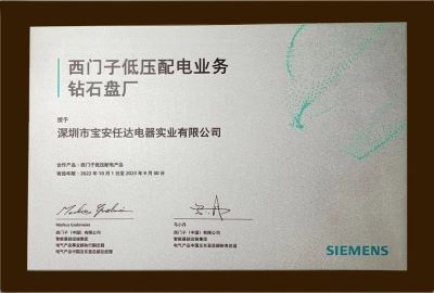 榮獲深圳市首家“西門子鉆石盤廠”榮譽(yù)稱號(hào)。開(kāi)平任達(dá)電器取得“ISO14001:2015環(huán)境管理體系證書”