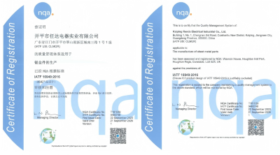 開(kāi)平任達(dá)電器取得“IATF16949:2016汽車行業(yè)質(zhì)量管理體系證書”