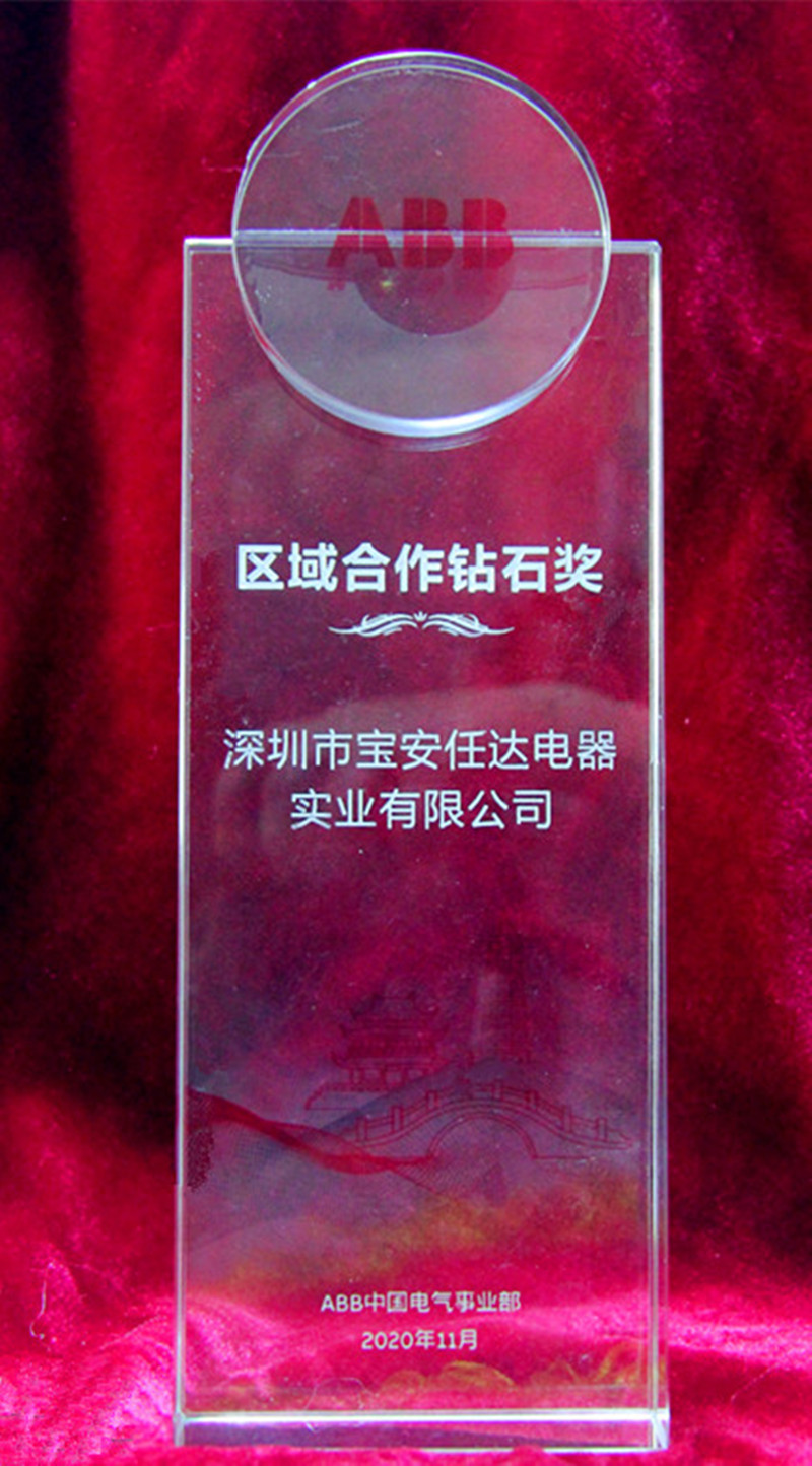 恭喜任達(dá)電器榮獲ABB客戶頒發(fā)的“區(qū)域合作鉆石獎項”