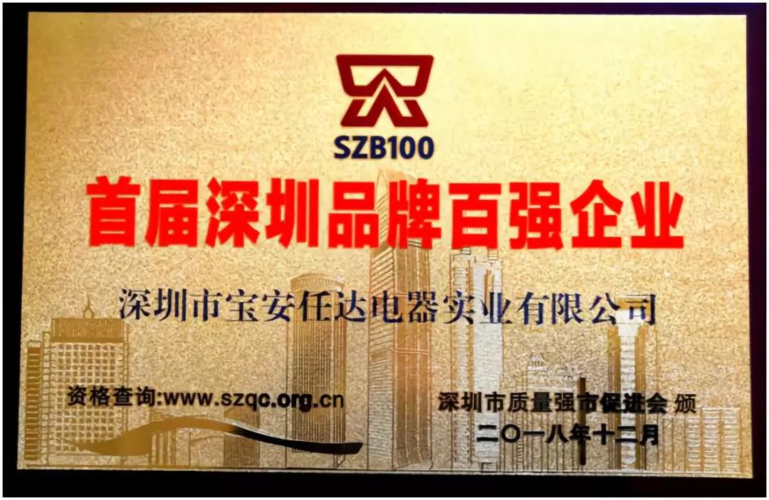 深圳市寶安任達(dá)電器實業(yè)有限公司榮登“首屆深圳品牌百強企業(yè)”榜單