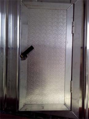 干燥窯大門采用整體吊掛式,全鋁合金結構,門內(nèi)填玻璃棉保溫,窯門四周與門口之間采用耐高溫防腐膠條密封,鋁合金門框采用特殊的結構設計,提高了大門的整體強度、氣密性、保溫性能和使用壽命等多項指標,起門裝置采用新型木材干燥窯大門提拉架,具有起重量大、起吊輕便、操作簡單、移動平穩(wěn)等特點。